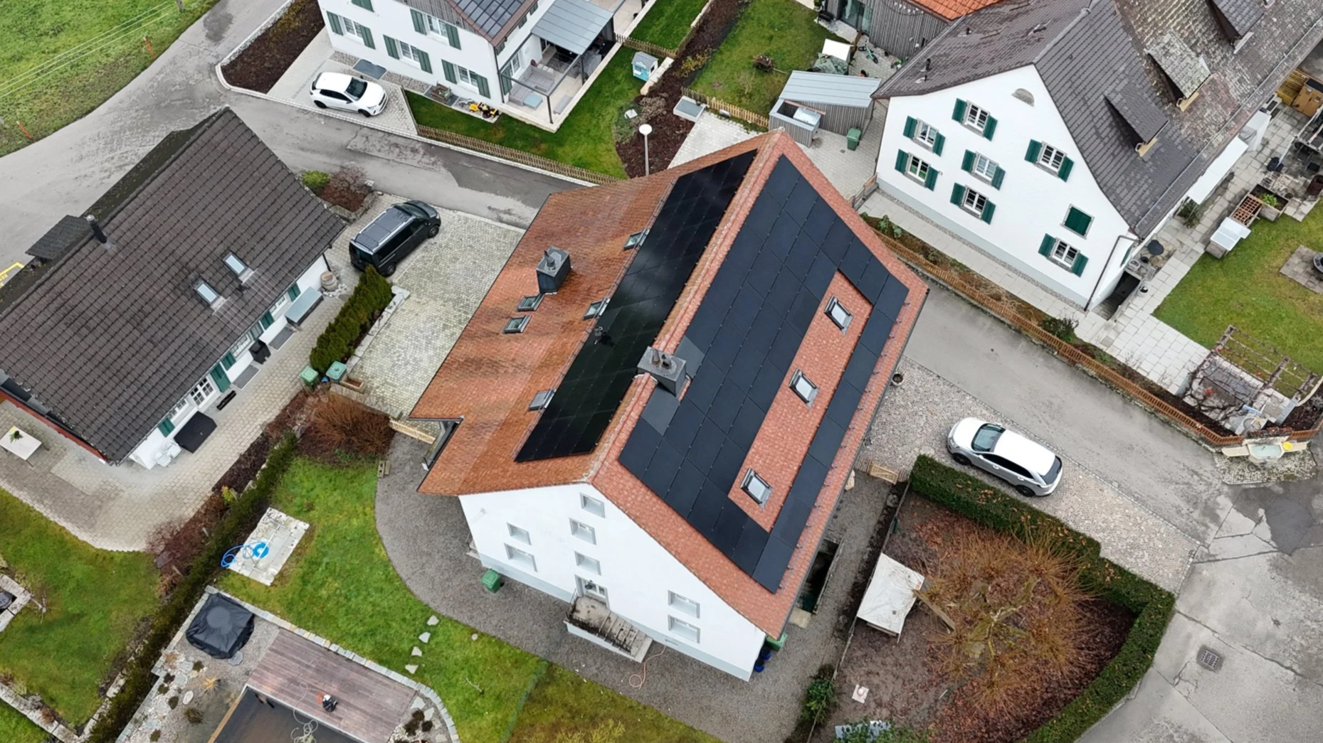 Die Indach-Solaranlage versorgt das Doppeleinfamilienhaus effizient mit Solarstrom, senkt die Energiekosten nachhaltig und sorgt für grössere Unabhängigkeit vom Netz. Gleichzeitig wertet sie die Immobilie durch ihre harmonische Dachintegration und das moderne Erscheinungsbild auf.